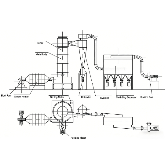 3D Structure & Airflow of Our Industrial Flash Dryer