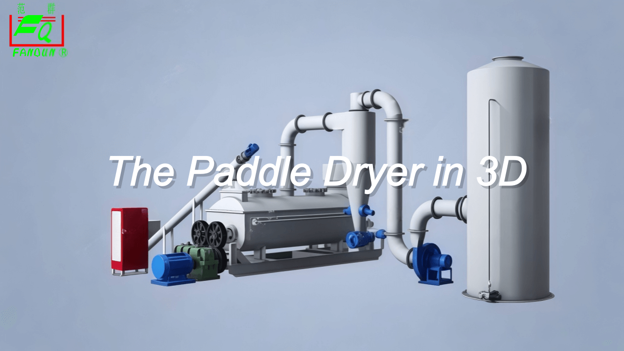 This video shows the internal structure and heat transfer process of FANQUN paddle dryer. The rotating paddles continuously mix and convey material while heat is indirectly transferred through the paddles and jacket.This design ensures uniform drying, gentle material handling, and high thermal efficiency, making the paddle dryer ideal for drying sludge, paste, and heat-sensitive materials in continuous industrial applications.